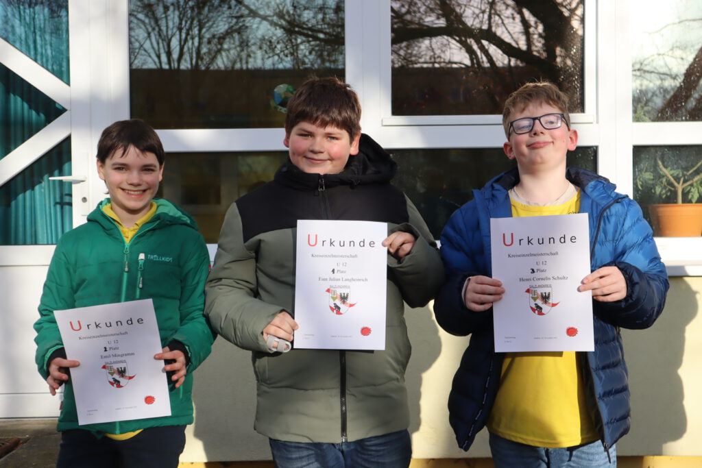 In der U12 gingen fünf Kinder an den Start. Bei den Jungen gewann Finn Langheinrich mit makellosen 5 Punkten vor Emil Mingramm (4 Punkte) und Henri Schultz (2 Punkte). Bei den Mädchen belegte Jasmin Lange mit 3 Punkten Rang eins, Romina Hopfstock wurde Zweite.