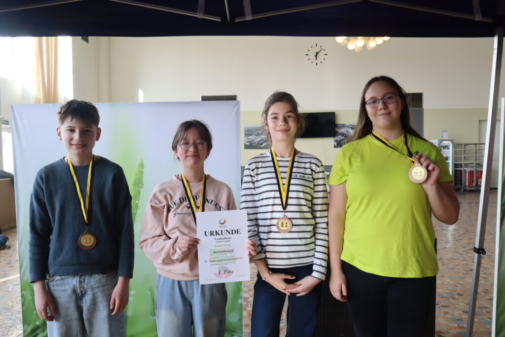 In der Wertungsklasse 2 zeigte das Dr.-Frank-Gymnasium Staßfurt eindrucksvoll, was Teamstärke bedeutet. Leon Schambier, Jason Beck, Jakob Goldschmidt und Mia Schwenke – sie alle erzielten jeweils 4 aus 5 Punkten. Unterstützt von Marvin Halasz (3 Punkte), Marius Recke (2 Punkte) und Finley Wiedensee (1 Punkt) entwickelte sich eine geschlossene Mannschaftsleistung auf höchstem Niveau. Das Ergebnis: Vize-Landesmeistertitel – ein weiterer großer Erfolg für Staßfurt.