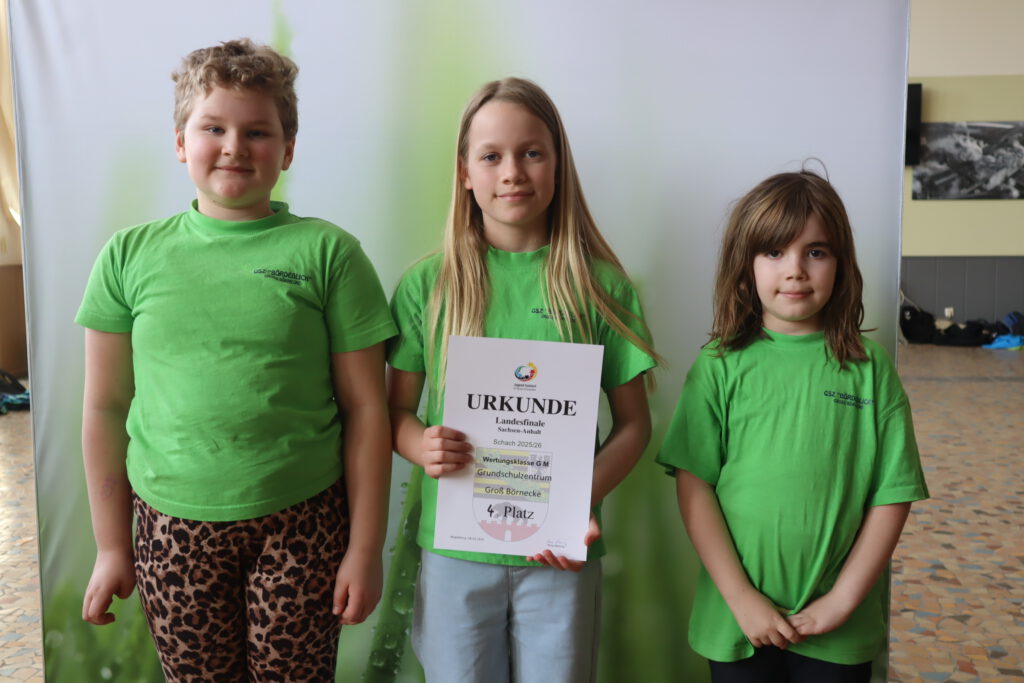 Im Bereich der 1. und 2. Klassen vertrat das Grundschulzentrum Bördeblick aus Groß Börnecke den Salzlandkreis. Erst wenige Monate zuvor war dort eine Schach-AG ins Leben gerufen worden – und dennoch kämpften sich die jungen Talente auf einen respektablen 6. Platz. Eine Platzierung, die mehr verspricht als sie aussagt: Hier wächst etwas heran.